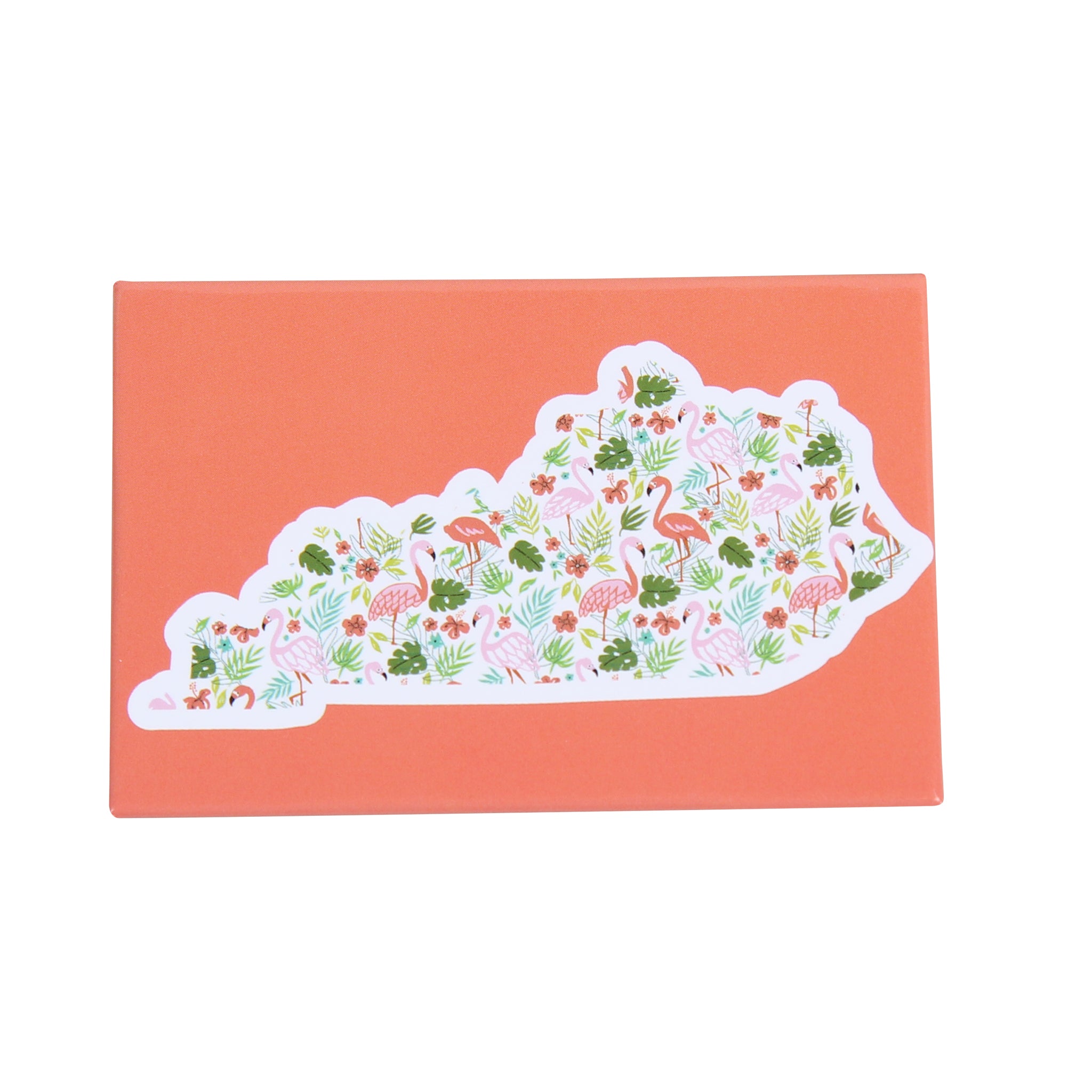 Bring a splash of Southern charm to your fridge with this delightful Kentucky Shape Flamingo Magnet! Featuring the Bluegrass State rendered in vibrant green and pink floral patterns, complete with fabulous flamingos scattered throughout, it's the perfect blend of quirky and cute. Whether you're a Kentucky native, a flamingo enthusiast, or just love unique home décor, this magnet adds personality to any magnetic surface. A fun conversation starter that celebrates the best of Southern style!