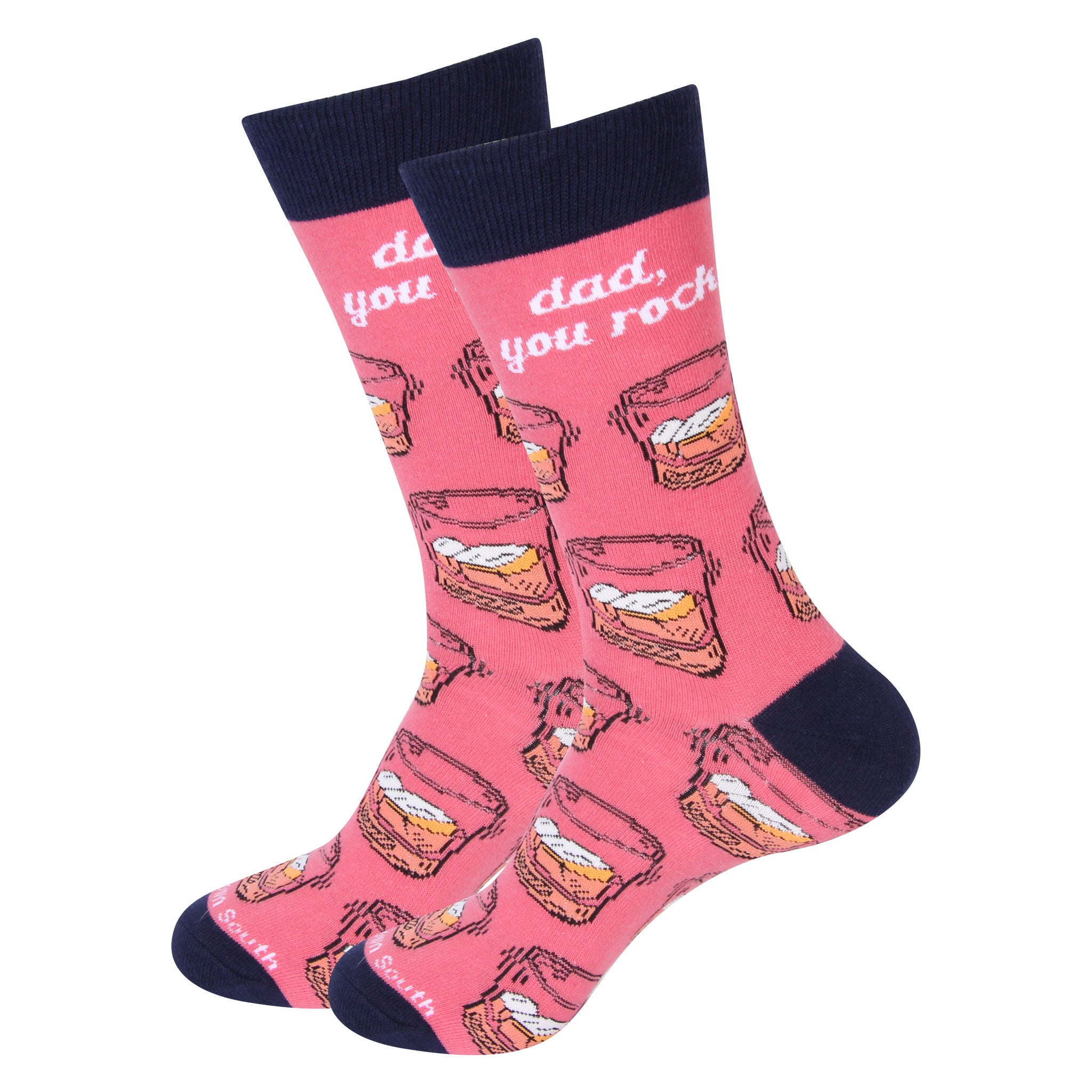 Raise a glass to the ultimate dad with the Dad You Rock Bourbon Socks, featuring a playful repeating pattern of whiskey rocks glasses under bold text that says it all. These socks are the perfect blend of humor, style, and appreciation—ideal for the dad who enjoys a good pour and even better company.