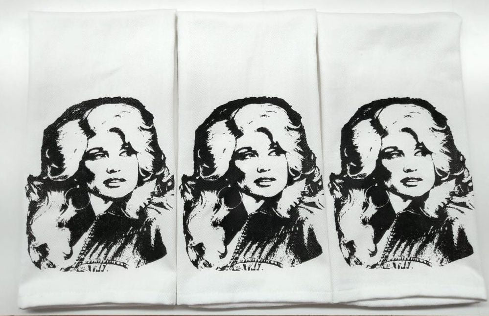 Bring timeless charm and a touch of country legend to your kitchen with our Dolly Tea Towel. Featuring a beautifully detailed, monochromatic illustration of the one and only Dolly Parton, this towel is a tribute to the queen of country, the icon of kindness, and the original rhinestone rebel.