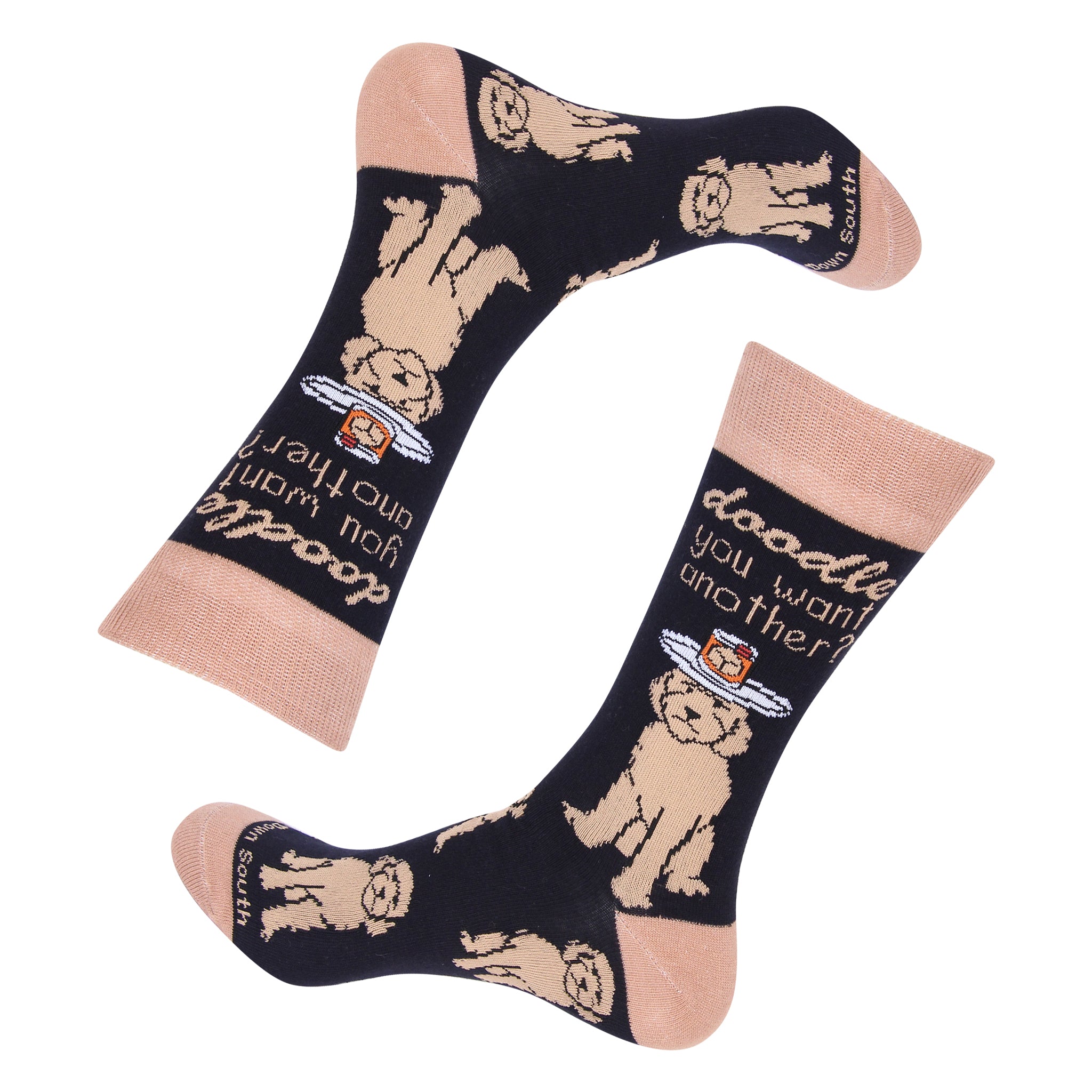 Designed with a vibrant and whimsical illustration, these socks make a great statement whether you're lounging at home, hanging out with friends, or buying a funny dog-themed gift for someone who’s obsessed with their doodle.