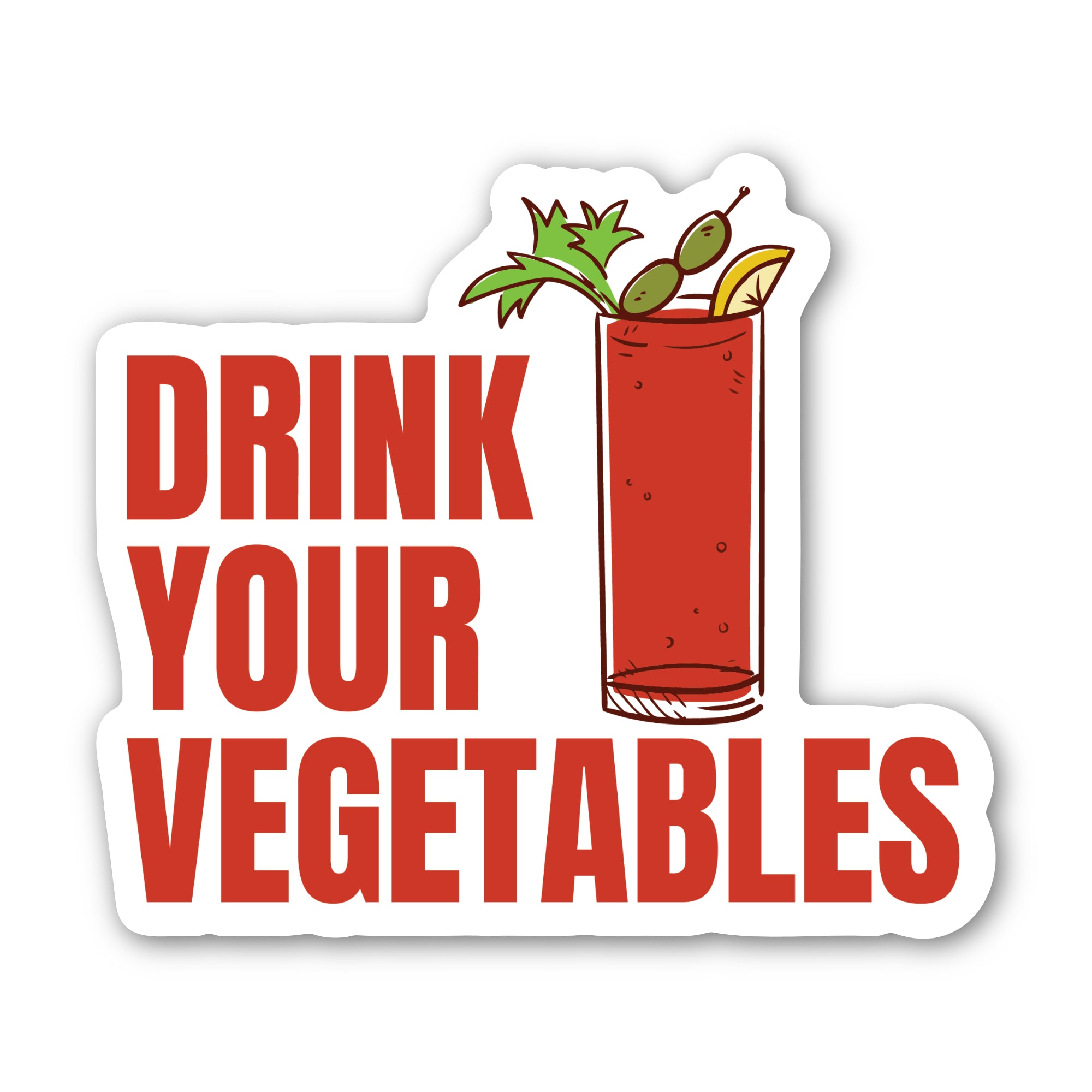 Add a splash of humor and flavor to your gear with this high-quality "Drink Your Vegetables" sticker! Featuring a vibrant Bloody Mary illustration topped with olives, celery, and lemon, this 4-inch waterproof vinyl sticker is perfect for foodies, brunch lovers, and cocktail fans alike. Made to last, it's weatherproof, scratch-resistant, and dishwasher-safe—great for water bottles, laptops, coolers, or bar carts.