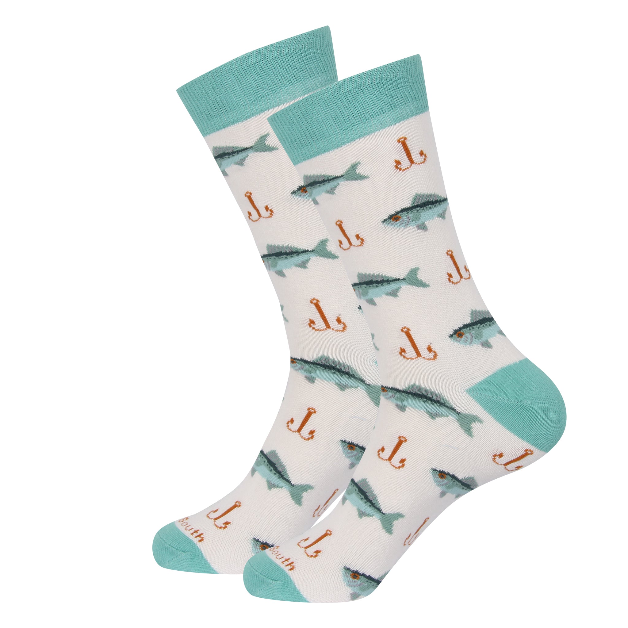 Hook a fresh catch of style with our Hook Line and Sink Fishing Socks. Featuring an all-over pattern of fish and hooks on a clean background, these socks are the perfect nod to days spent on the water. Made from a breathable cotton, polyester, and spandex blend, they’re soft, stretchy, and built for all-day comfort. With a unisex fit and classic outdoorsy design, they’re a great gift for anglers or anyone who loves a little fishing flair in their wardrobe.