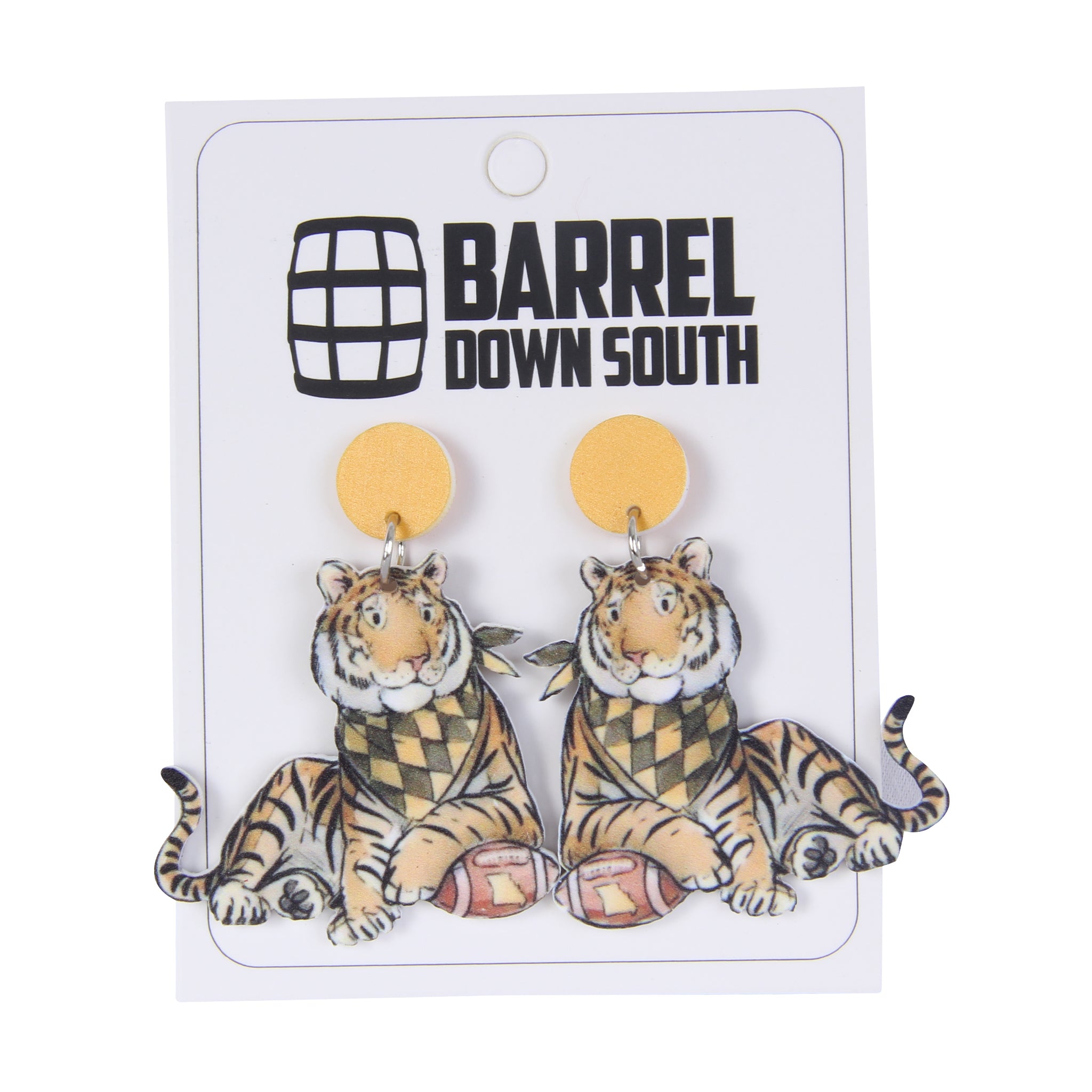 Add a wild touch to your look with these Gold Tiger Acrylic Earrings. Lightweight and bold, they bring a playful roar to any outfit, perfect for those who love to stand out with a splash of fierce style.