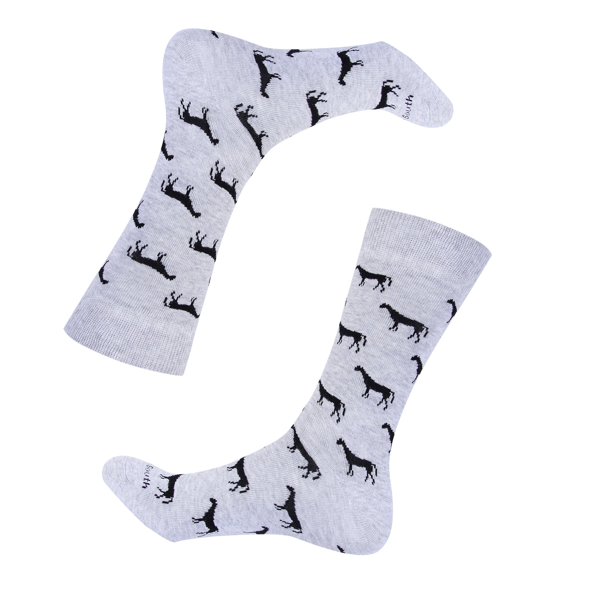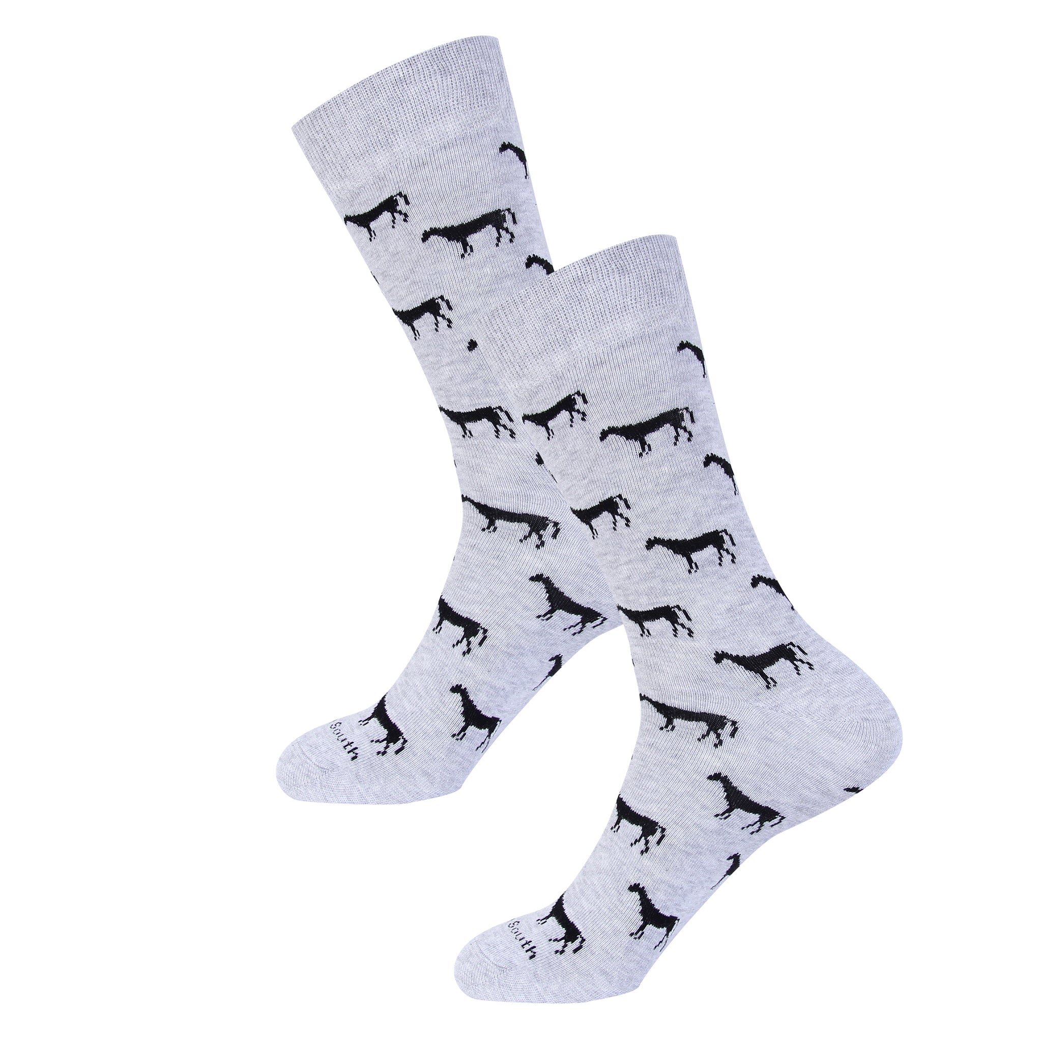 Step into fun with our Grey/Black Standing Horse Socks! These quirky socks feature a playful horse design that stands tall on your feet, adding a dash of whimsy to your day. Perfect for horse lovers or anyone wanting to trot through their routine with a smile. Comfortable and eye-catching, they’re sure to be your new favorite pair!