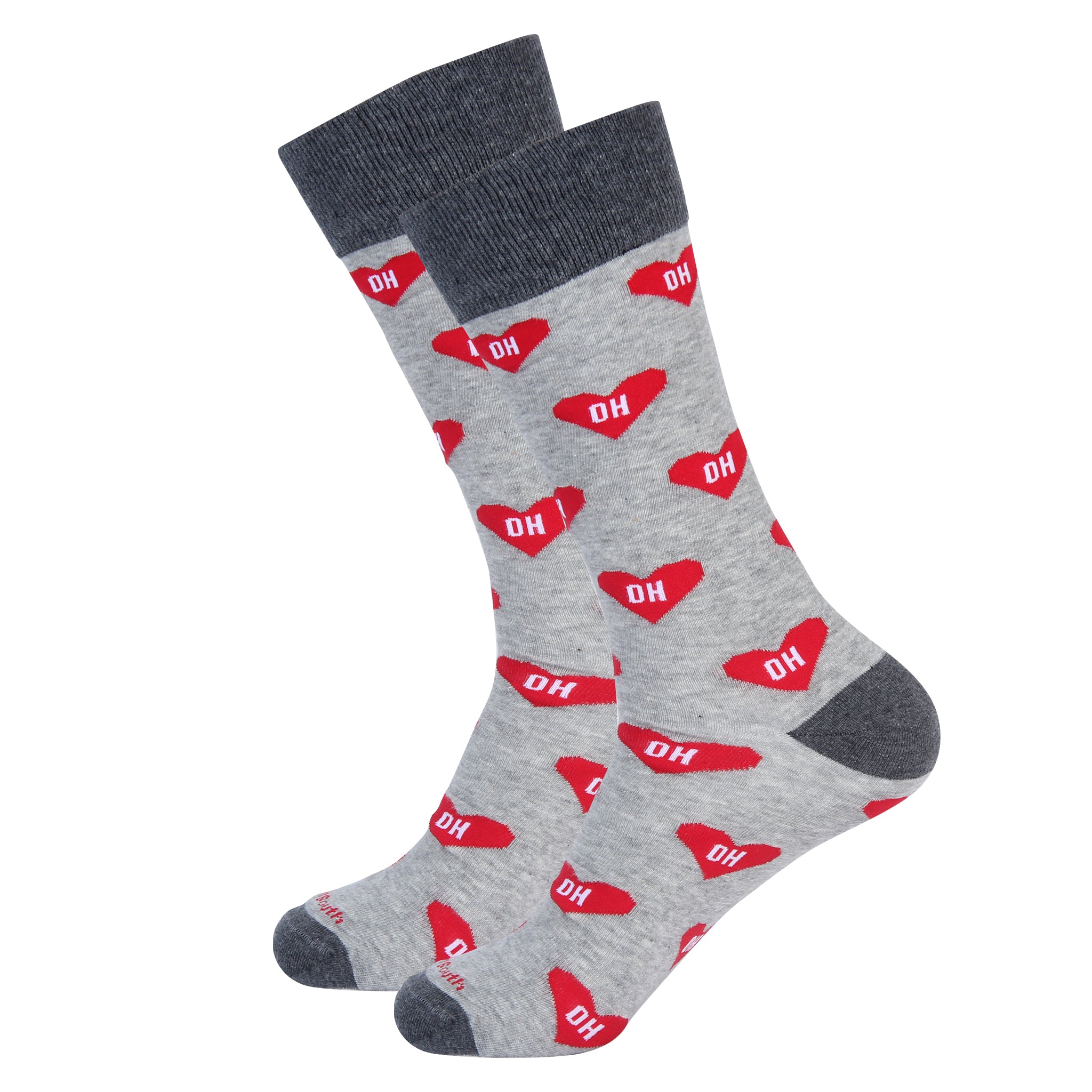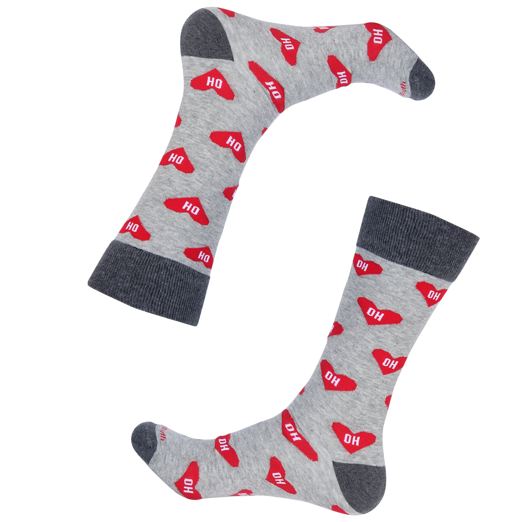 Wear your heart on your feet with our Heart Ohio Socks. Featuring a bold red heart design alongside the word "OH," these socks are a celebration of the unique charm and spirit of the great state of Ohio.