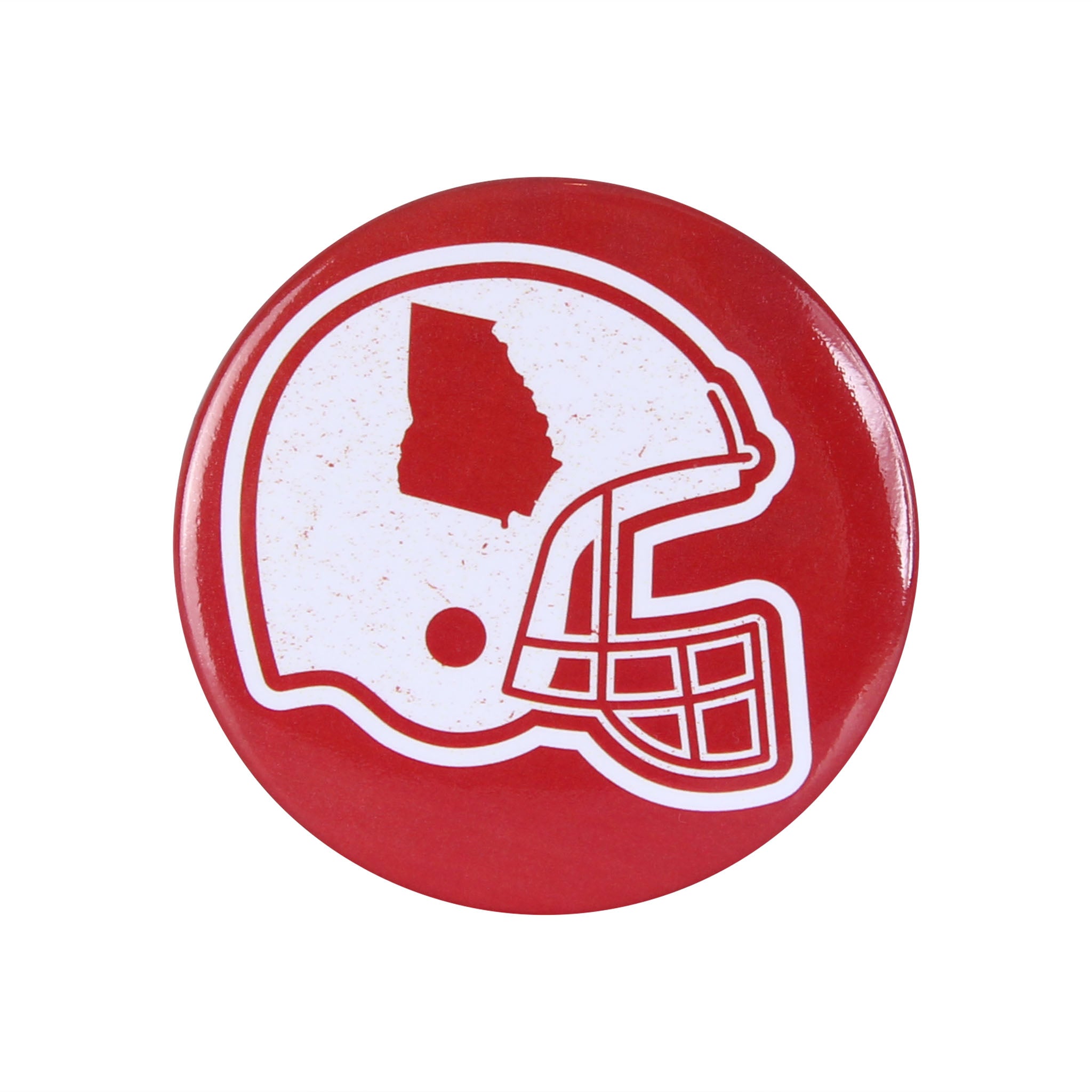 Show your Georgia pride with this playful Football Helmet State of GA Button Pin. Perfect for fans and collectors, it adds a fun touch to any outfit or gear. Pin it on your jacket, backpack, or hat to celebrate your love for the game and the Peach State!