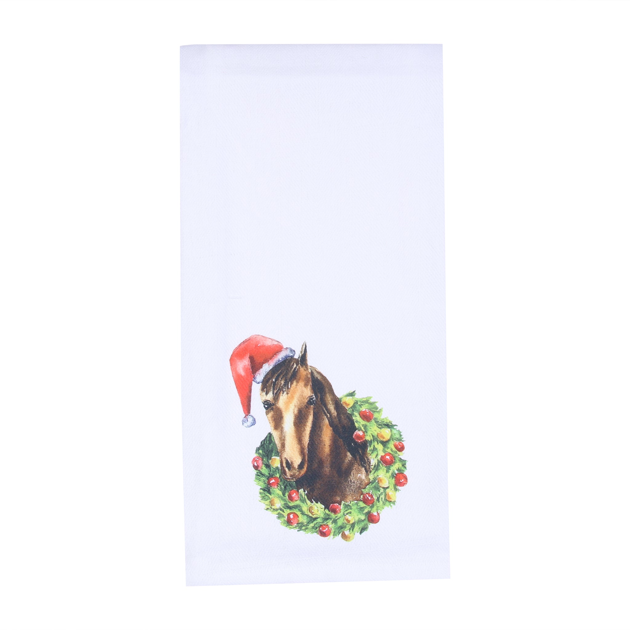 Horse Head in Christmas Wreath Tea Towel