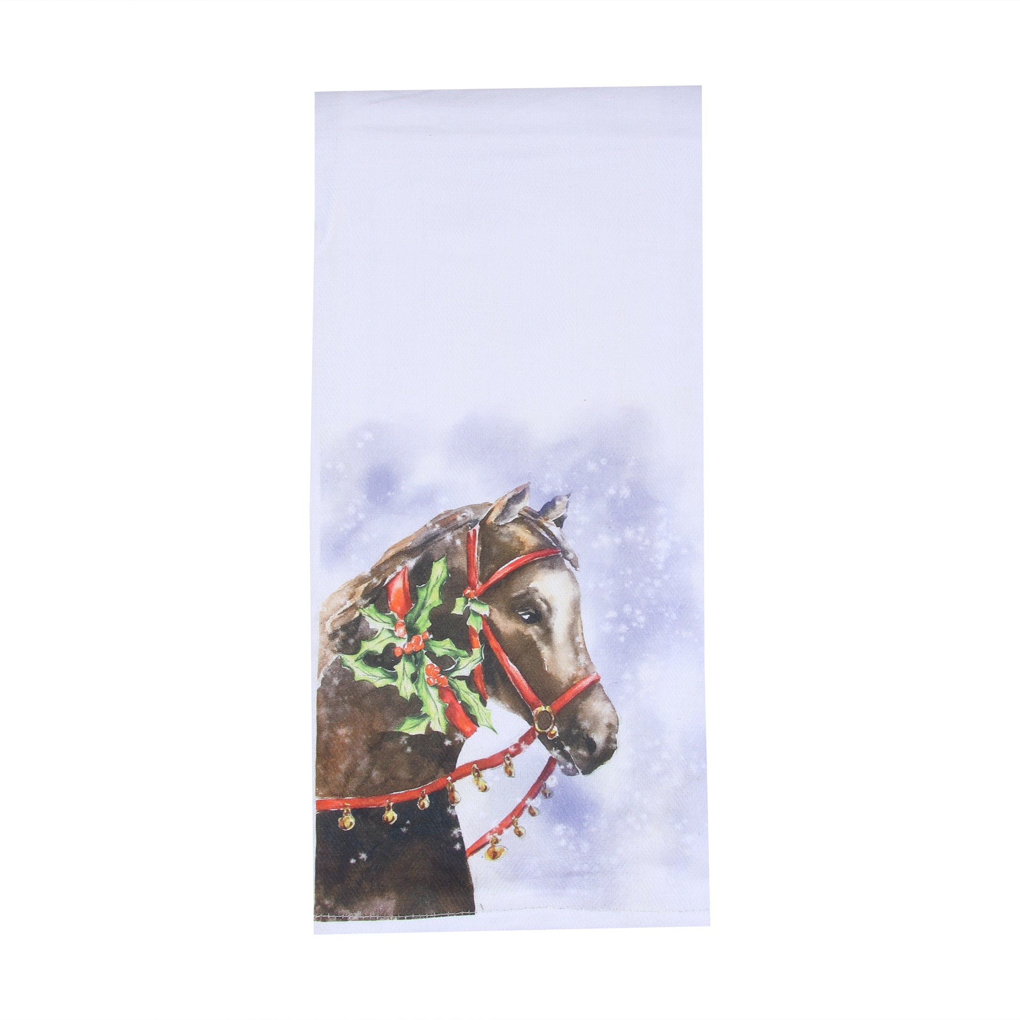 Whether you're decorating for Christmas or searching for a unique gift, this design blends classic holiday spirit with timeless equine beauty. Elevate your festive décor with this warm and inviting tea towel.