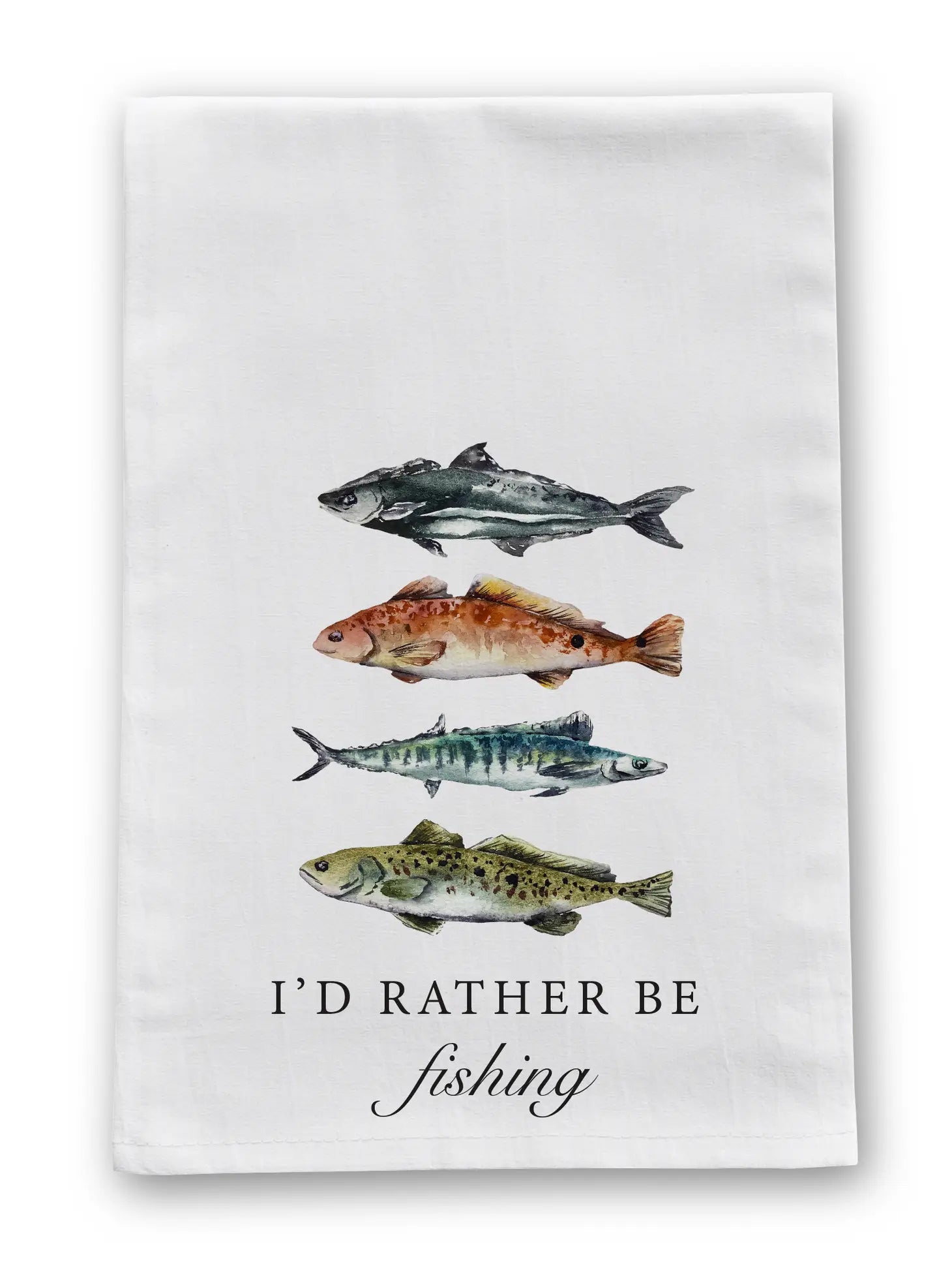 I'd Rather Be Fishing Stacked Fish Tea Towel