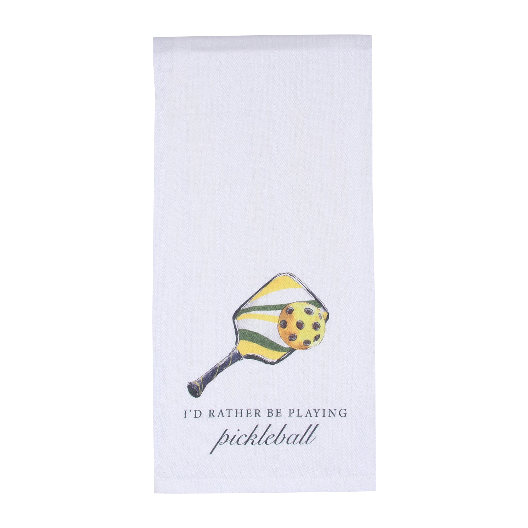 Add a splash of fun to your kitchen with the I'd Rather Be Playing Pickleball Tea Towel. Perfect for pickleball enthusiasts, this playful towel brightens up your space while keeping your hands and dishes dry. Durable and easy to clean, it’s a charming way to show off your favorite pastime even when you’re off the court.