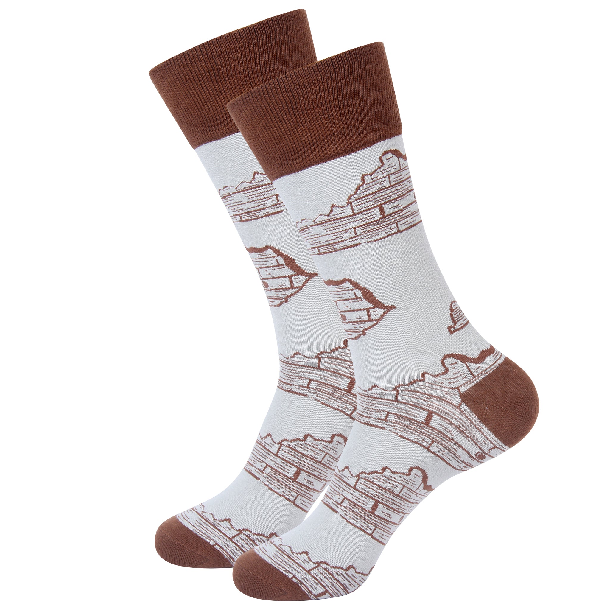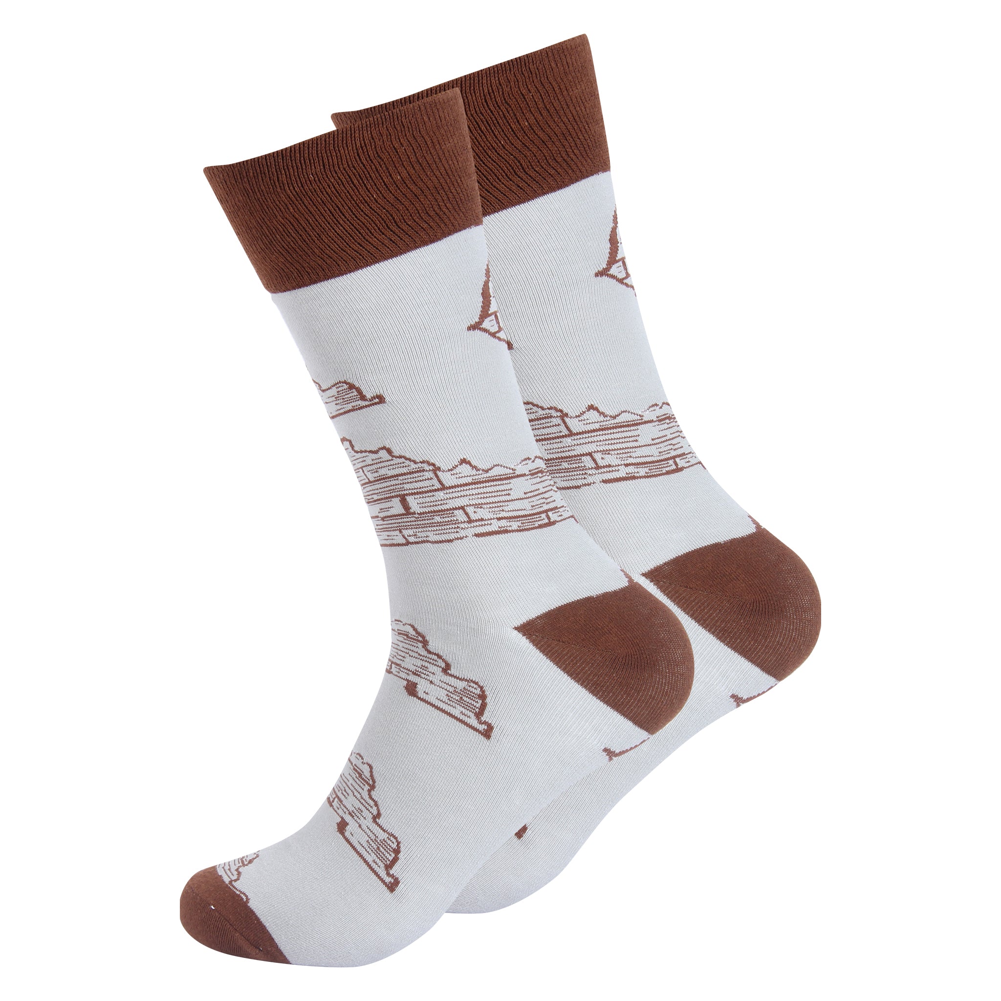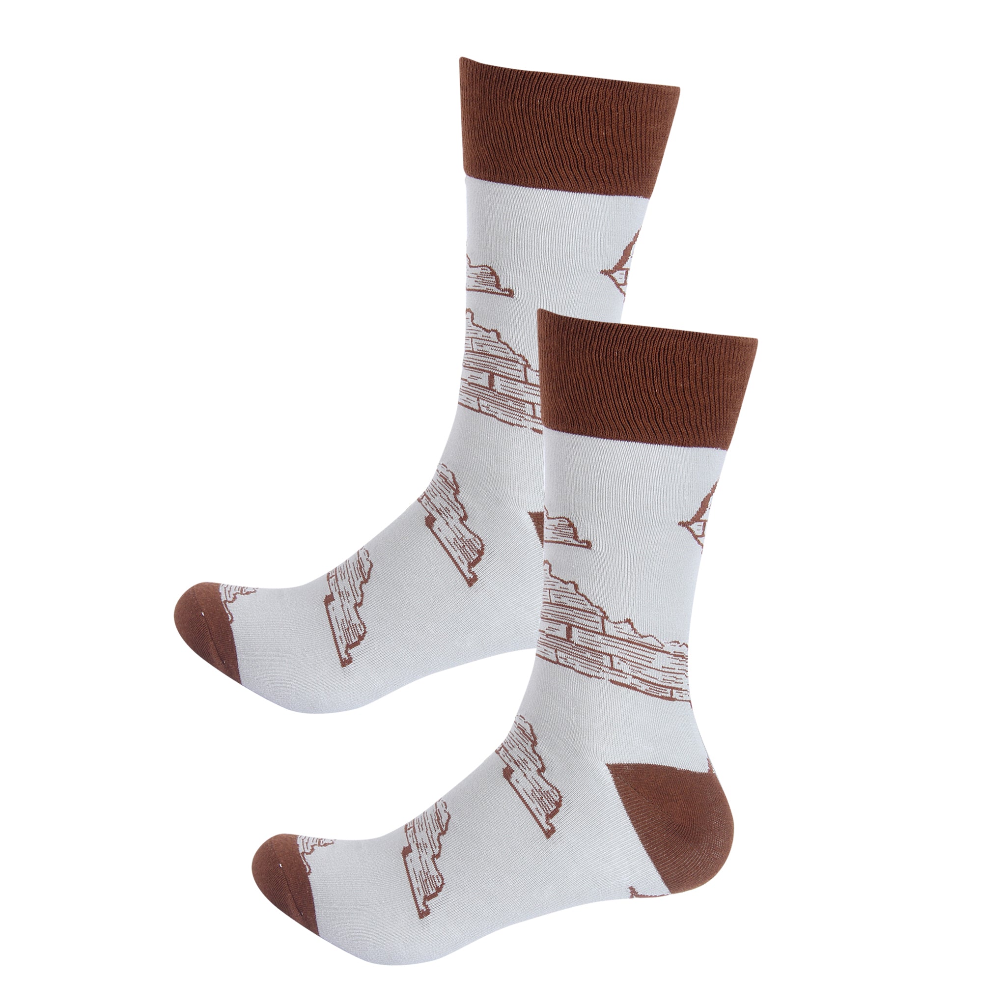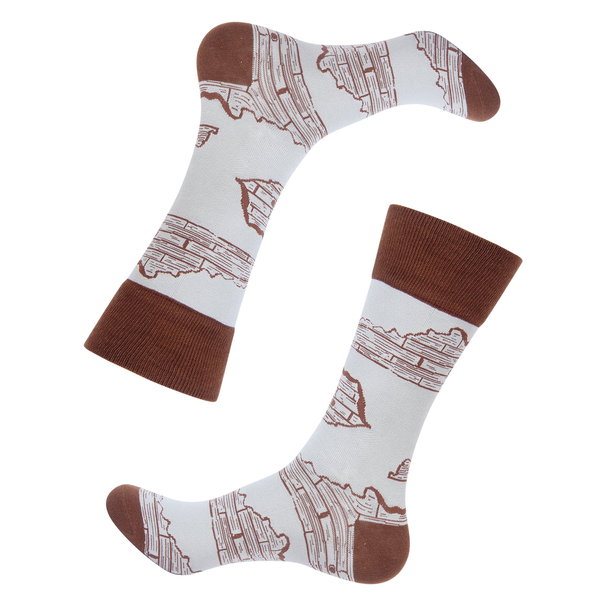 Step into the elegance and heritage of Kentucky with our Kentucky Stave Socks. Featuring a design inspired by the iconic staves used in bourbon barrels, these socks pay homage to the state's rich bourbon-making tradition and the craftsmanship that goes into every barrel. The intricate pattern, reminiscent of the charred oak staves that give bourbon its distinctive flavor, embodies the spirit of Kentucky's renowned distilling industry. Whether you're a bourbon enthusiast, a lover of Kentucky culture, or simply appreciate the artistry of woodworking, these socks offer a unique way to celebrate the Bluegrass State.