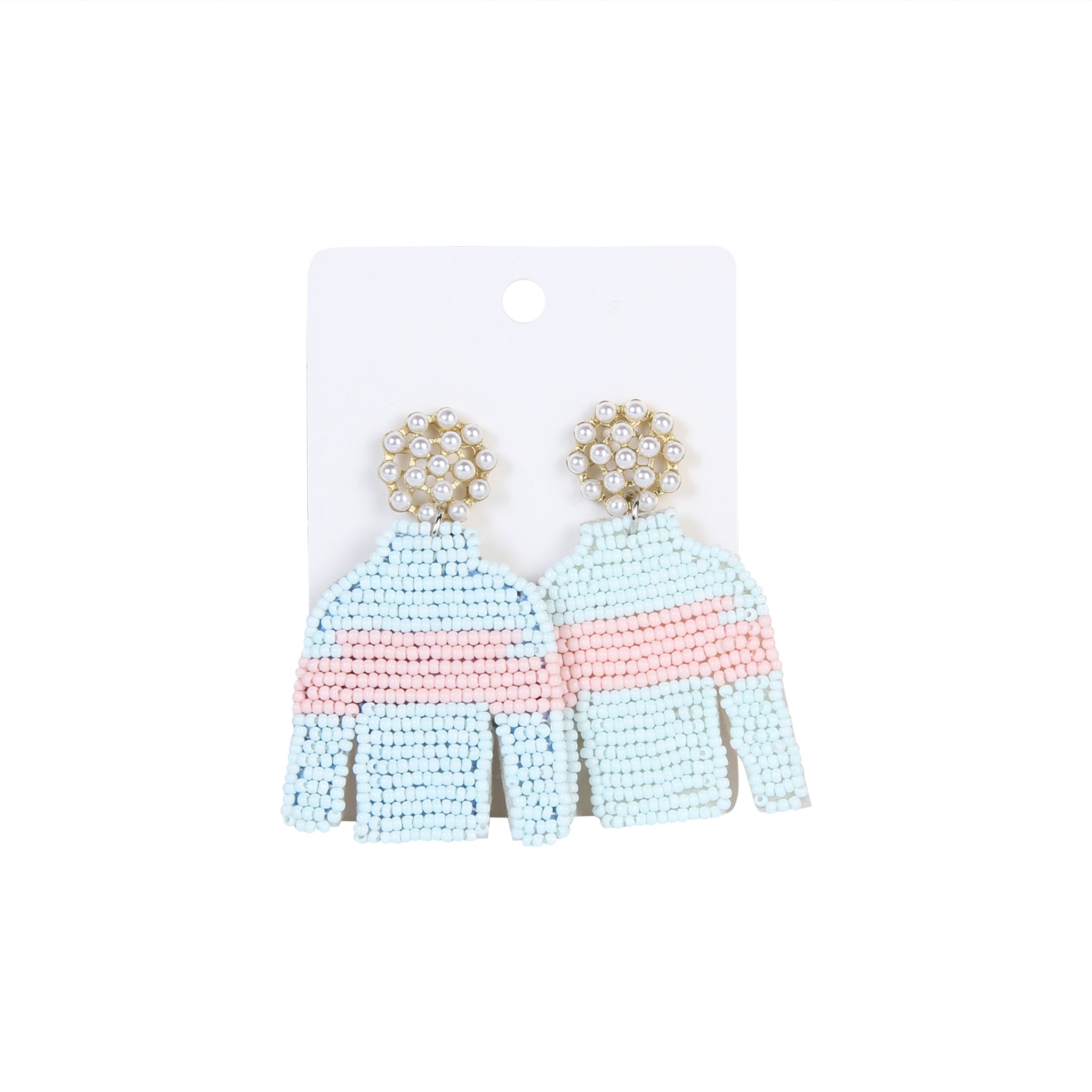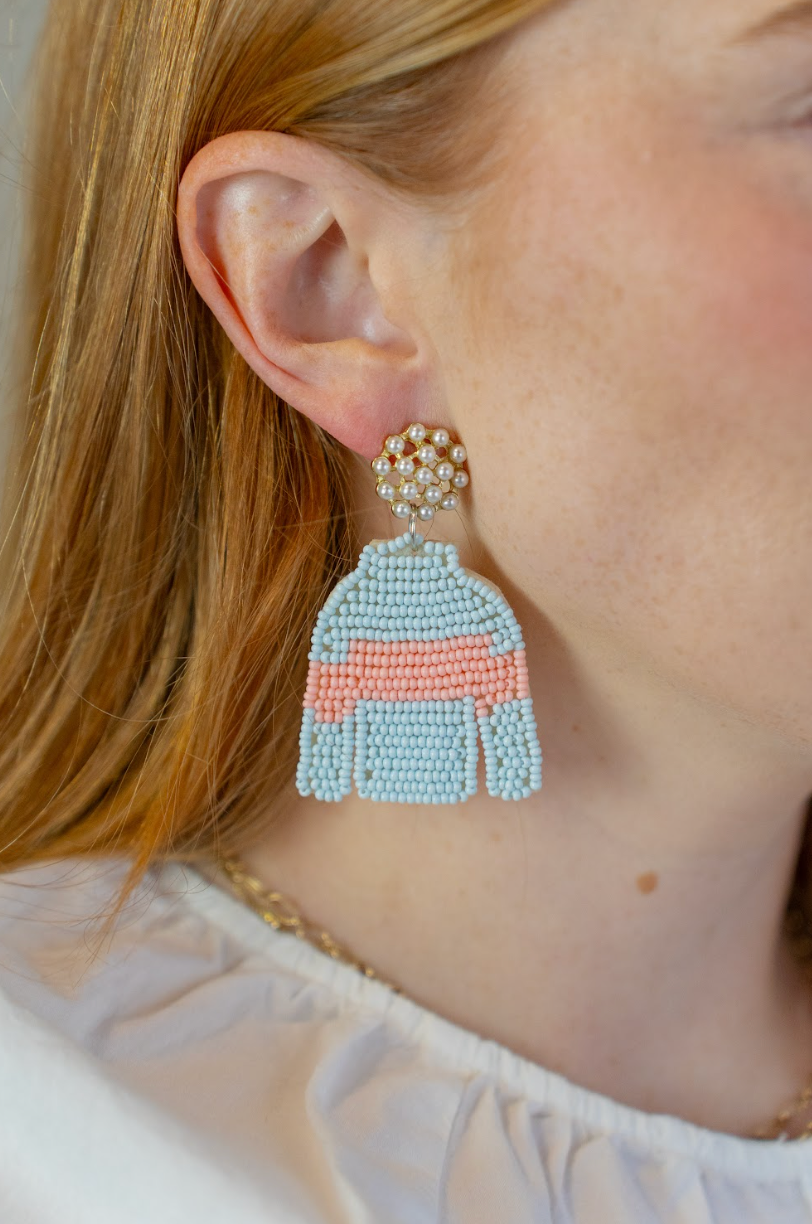 The classic combination of light blue and pink hues, accentuated by the intricate Jockey Silk pattern, makes these earrings a perfect accessory to complement your Derby Day attire. The use of party seed beads adds a touch of whimsy and charm, ensuring that these earrings stand out in any crowd.
