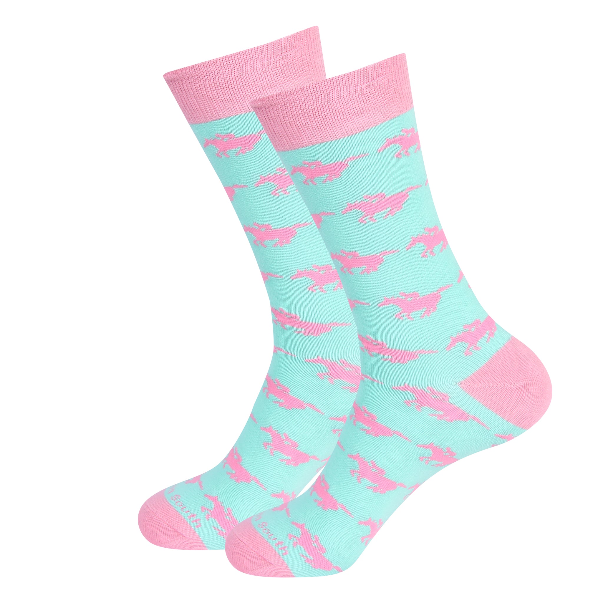 Mint/Pink Running Horse Socks