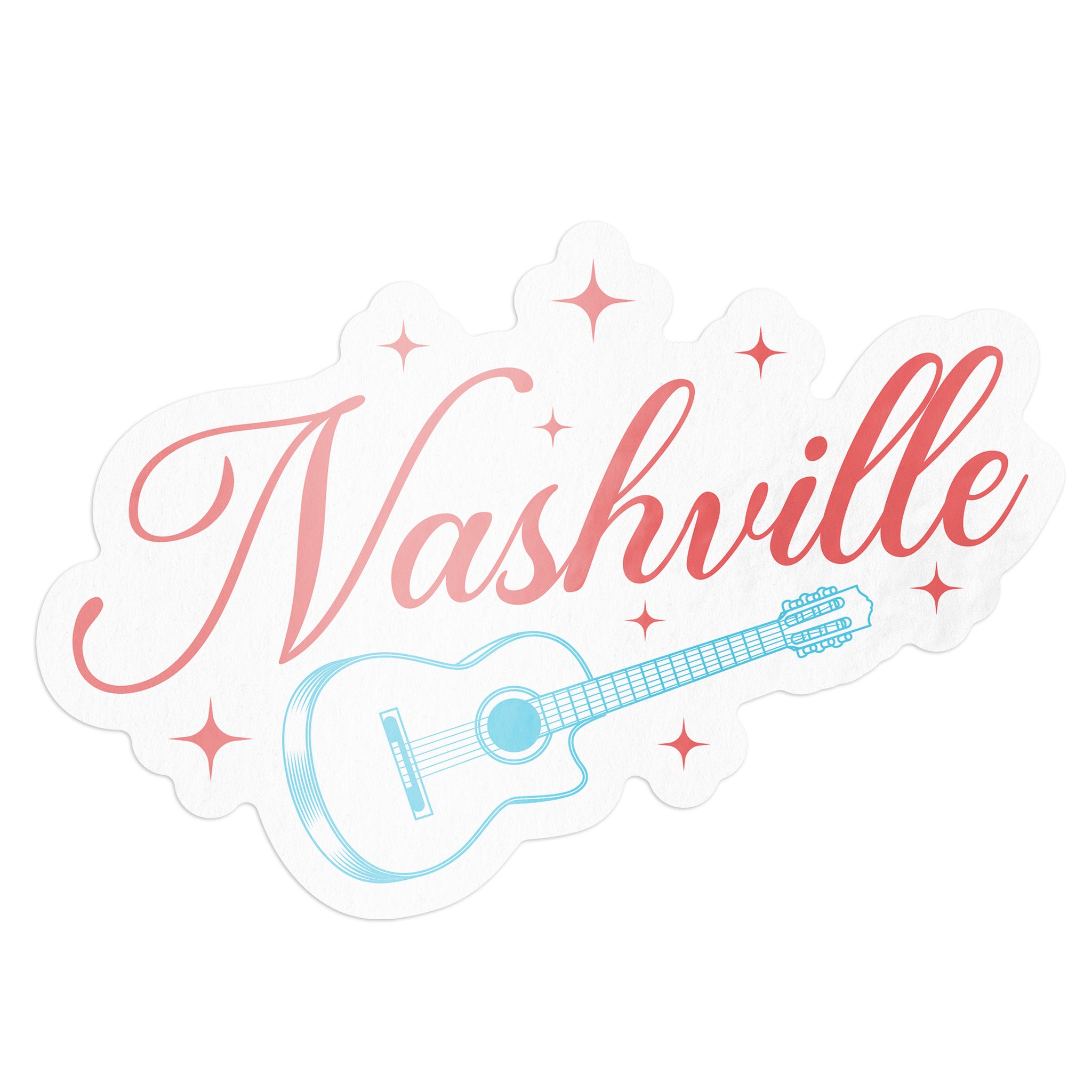 Celebrate music city charm with the playful Nashville Stars and Guitar Sticker, featuring bold lettering and a fun guitar illustration underneath. Perfect for adding a lively, musical touch to your laptop, water bottle, or notebook.