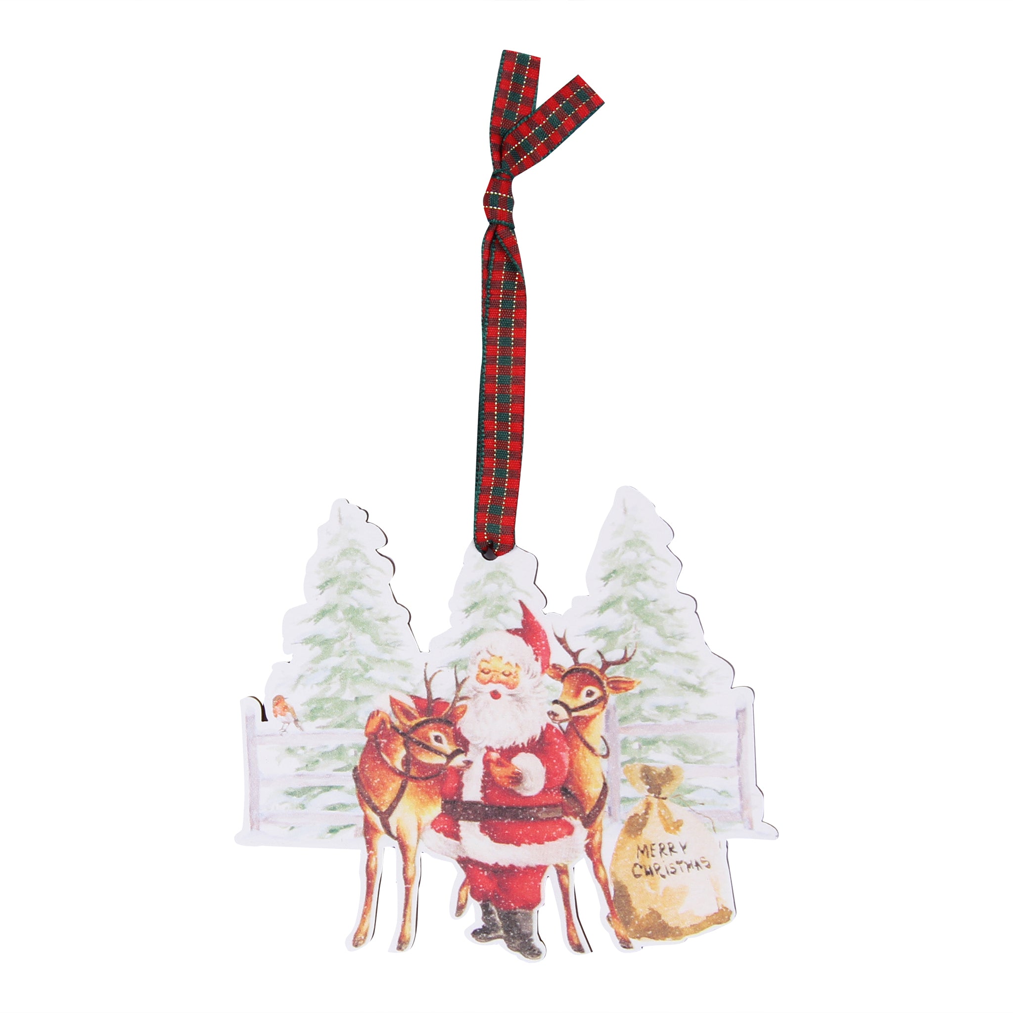Santa With Reindeer and Trees Ornament