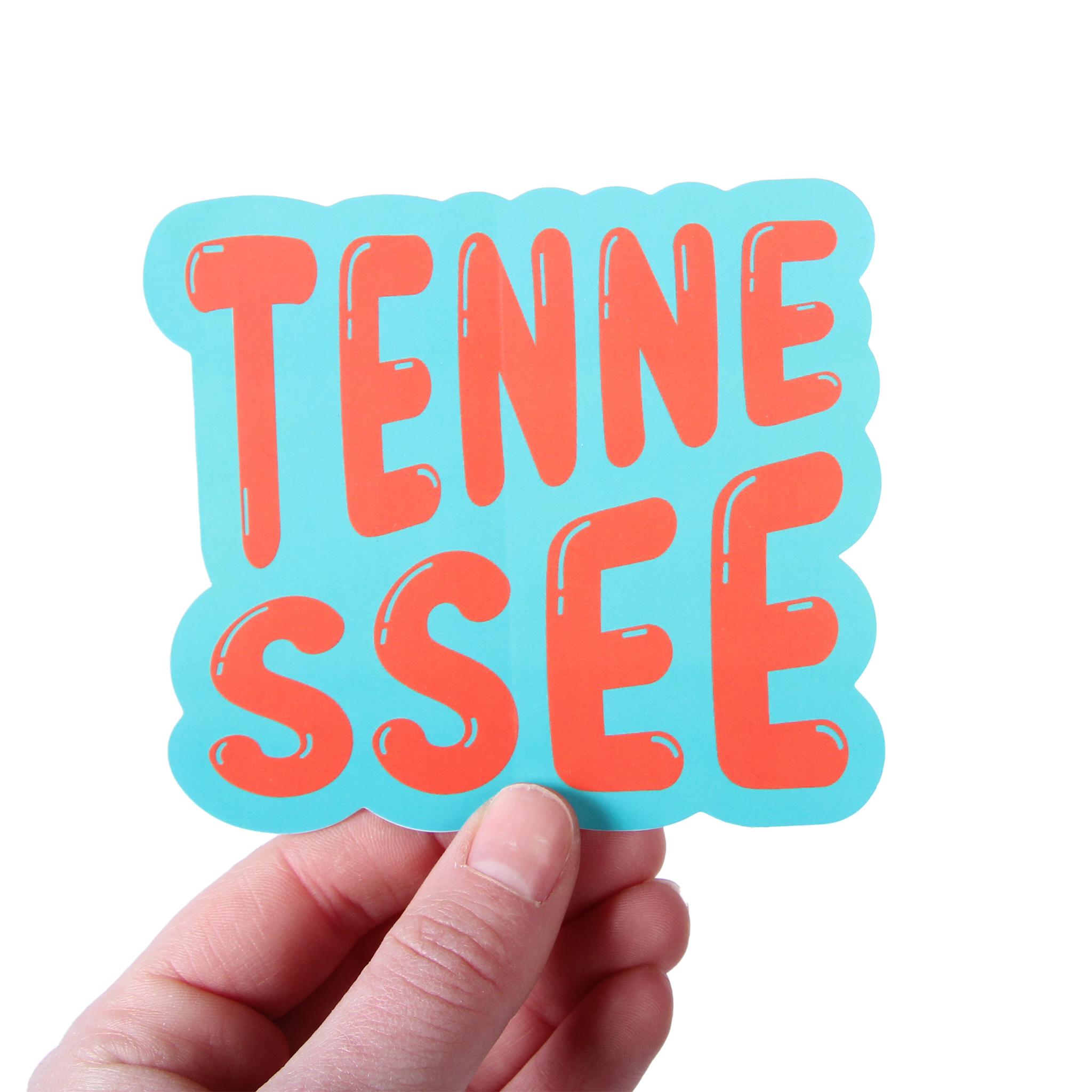 Brighten your gear with the Tennessee Bubble Words Sticker, showcasing bold orange bubble letters against a vibrant teal background. This playful design adds a fun pop of color to laptops, water bottles, or notebooks, perfect for showing off your Tennessee pride with a cheerful twist.