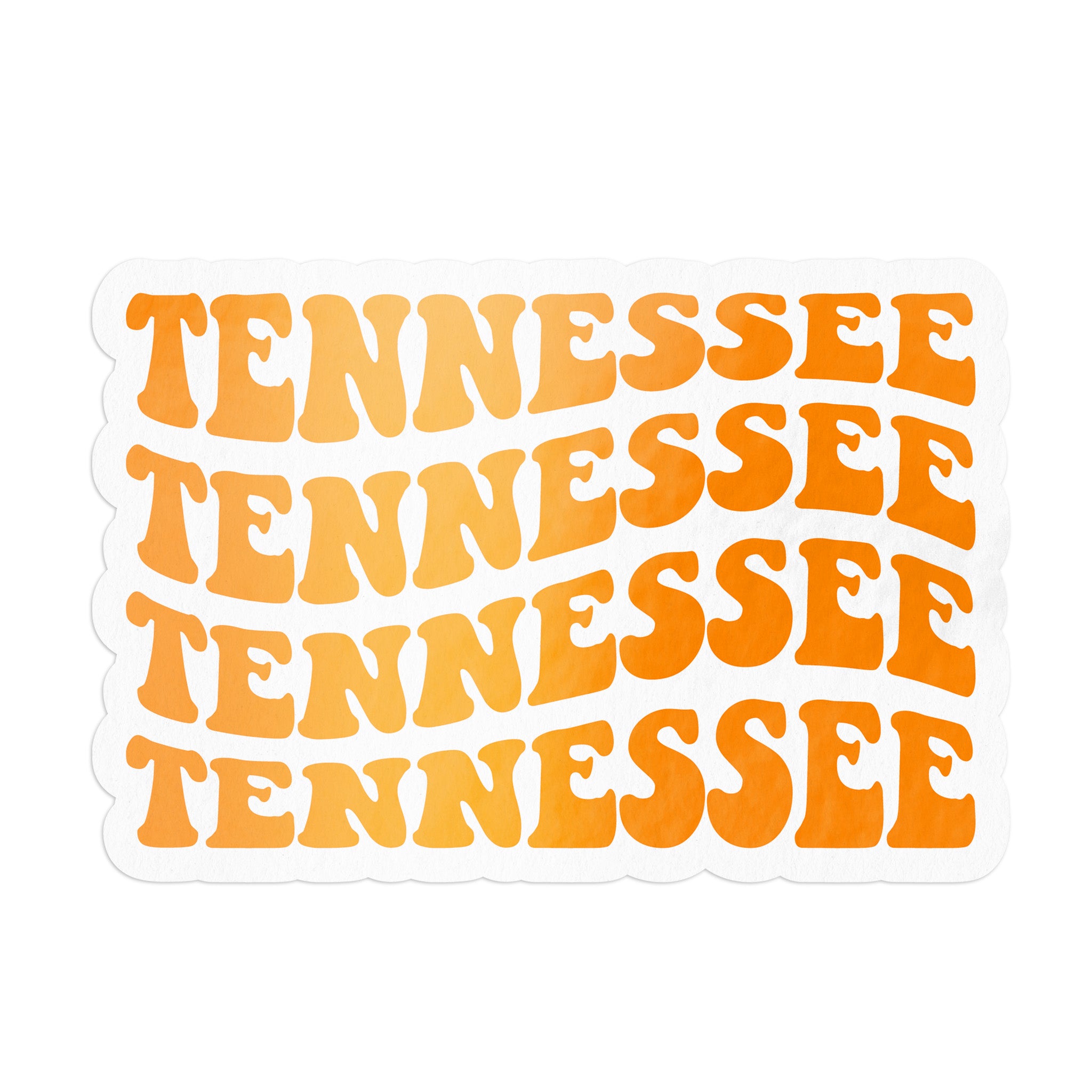 Add a fun and vibrant flair with the Tennessee Stacked Words Sticker, featuring the word "Tennessee" repeated four times in bold orange text. This playful design is perfect for brightening up laptops, water bottles, or notebooks while showing off your state pride in a unique, eye-catching way.