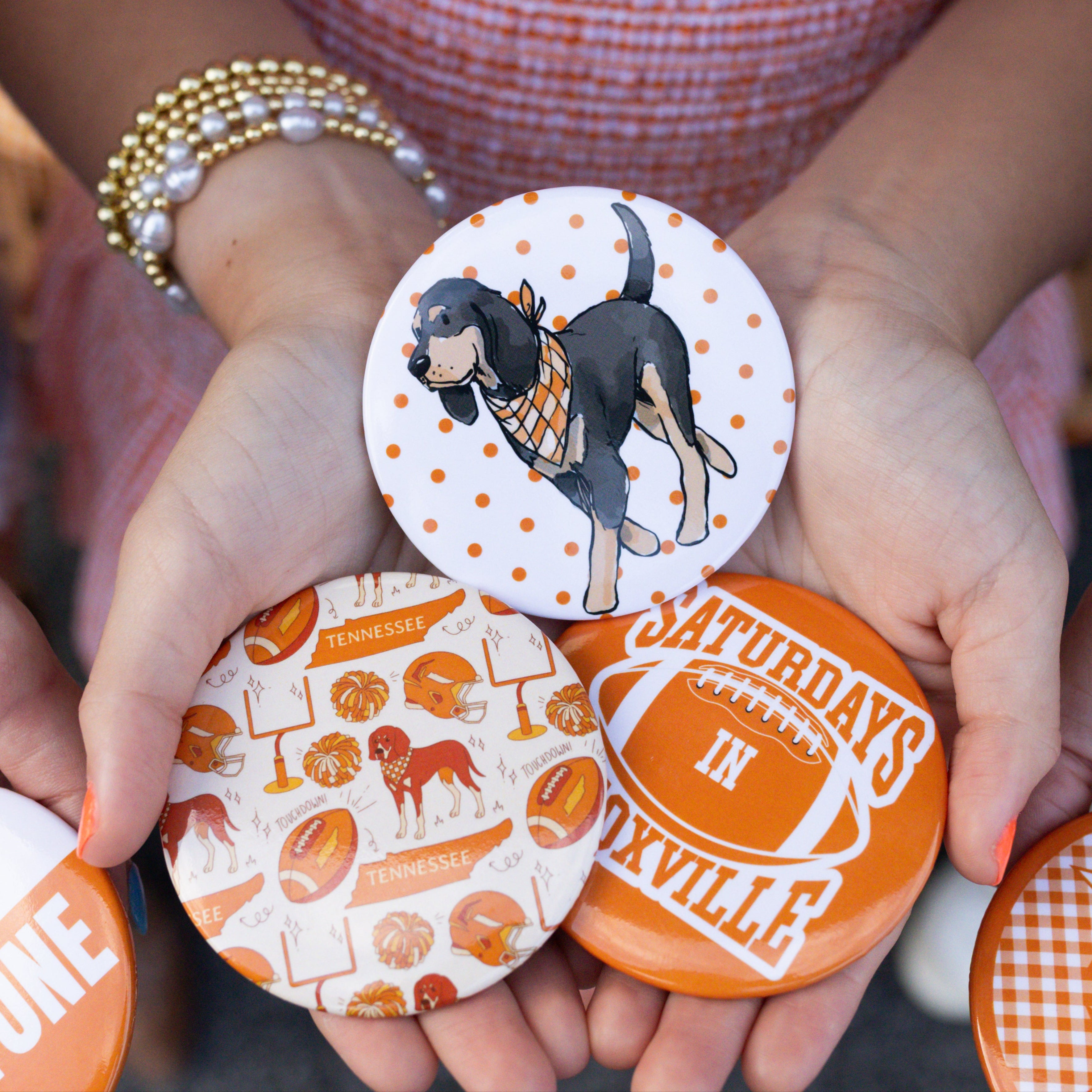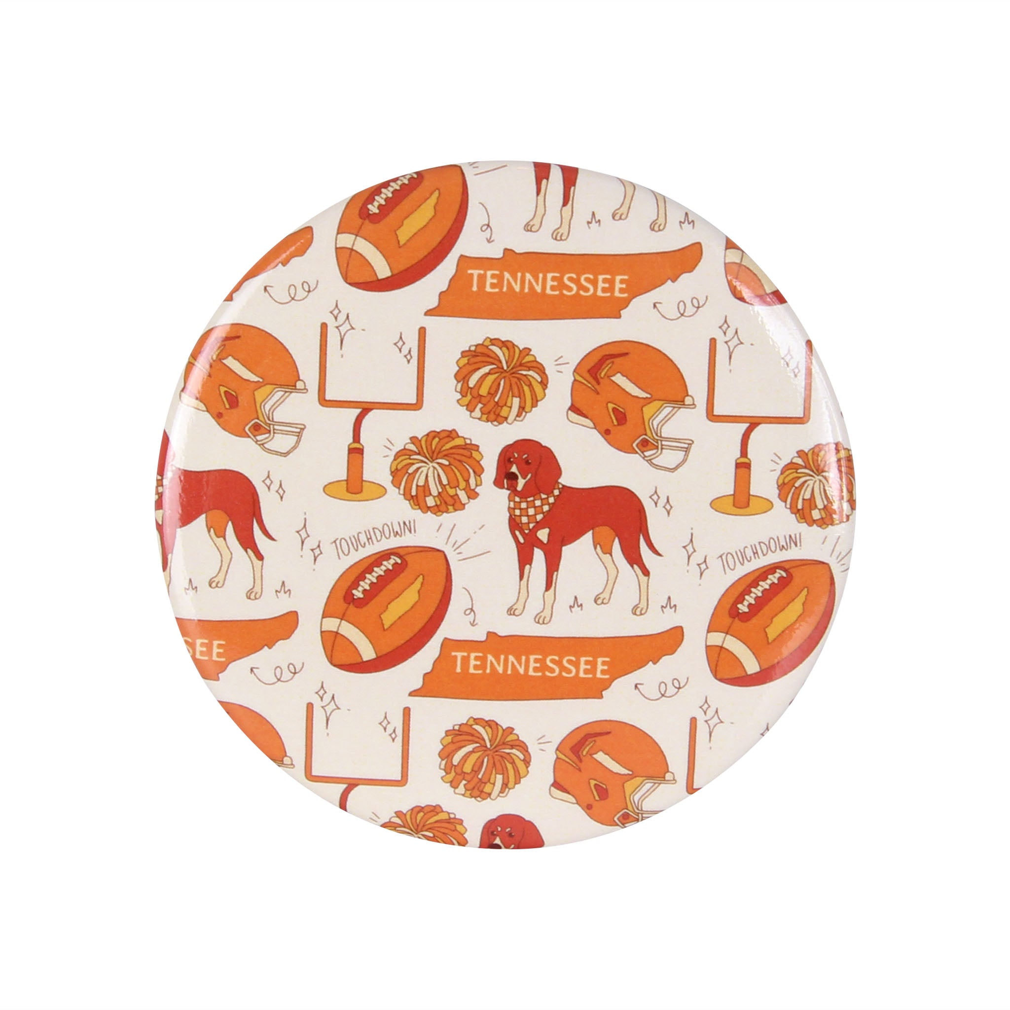 Show your Tennessee pride with the TN Icons Button Pin! Perfect for football fans, this playful accessory adds a fun pop of team spirit to your jacket, backpack, or hat. Lightweight and easy to wear, it’s a great way to celebrate game day wherever you go.