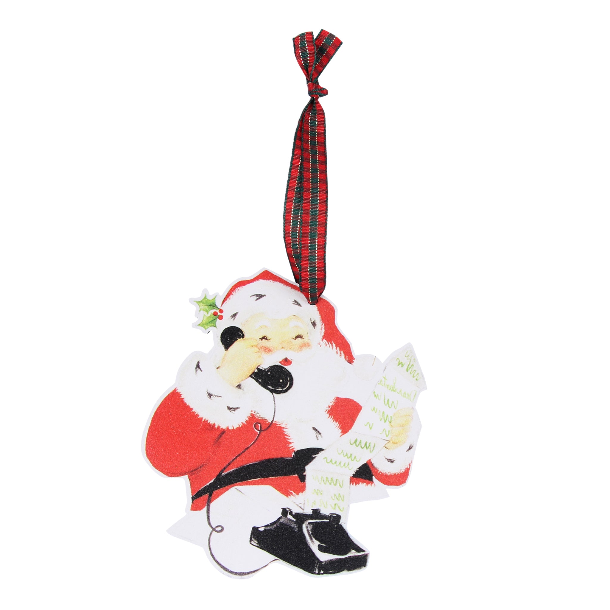 Printed with rich, detailed artwork, this Santa talking on the phone ornament captures the magic of the season with a fun twist. Whether he's calling the elves or checking in with the North Pole workshop, Santa is all business, surrounded by holiday spirit and a list of names to double-check!